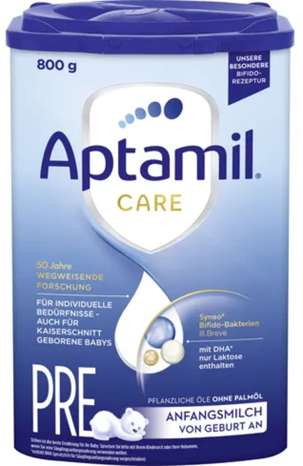Remarque concernant la formule CARE PRE d’Aptamil : Le lait maternel est l’alimentation la plus adaptée à votre bébé. Consultez toujours votre pédiatre avant de modifier son alimentation.