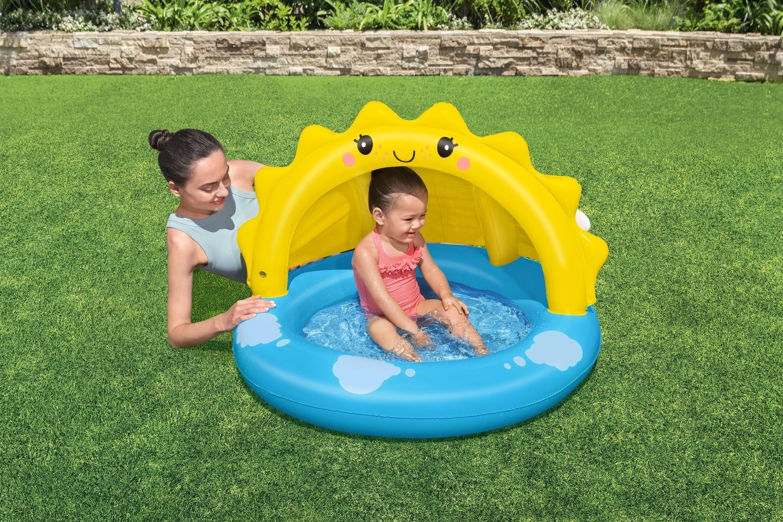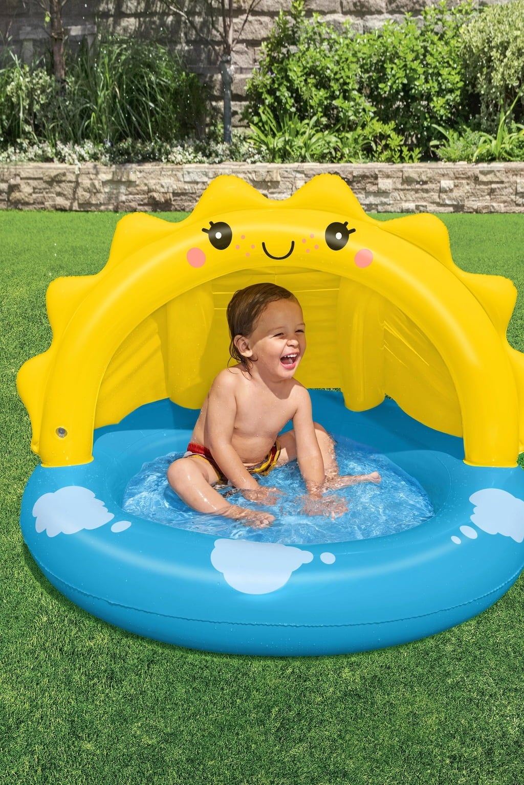 Ce bassin gonflable est idéal pour les petits explorateurs à partir de deux ans. Avec ses dimensions de 101 x 97 x 71 cm, il offre suffisamment d’espace pour des jeux d’eau joyeux et rafraîchissants. Son adorable design en forme de soleil apporte une touche de bonne humeur et en fait le coin préféré du jardin. Atout supplémentaire : son toit gonflable de protection solaire UV Careful™ qui procure une ombre agréable tout en protégeant efficacement des rayons du soleil.