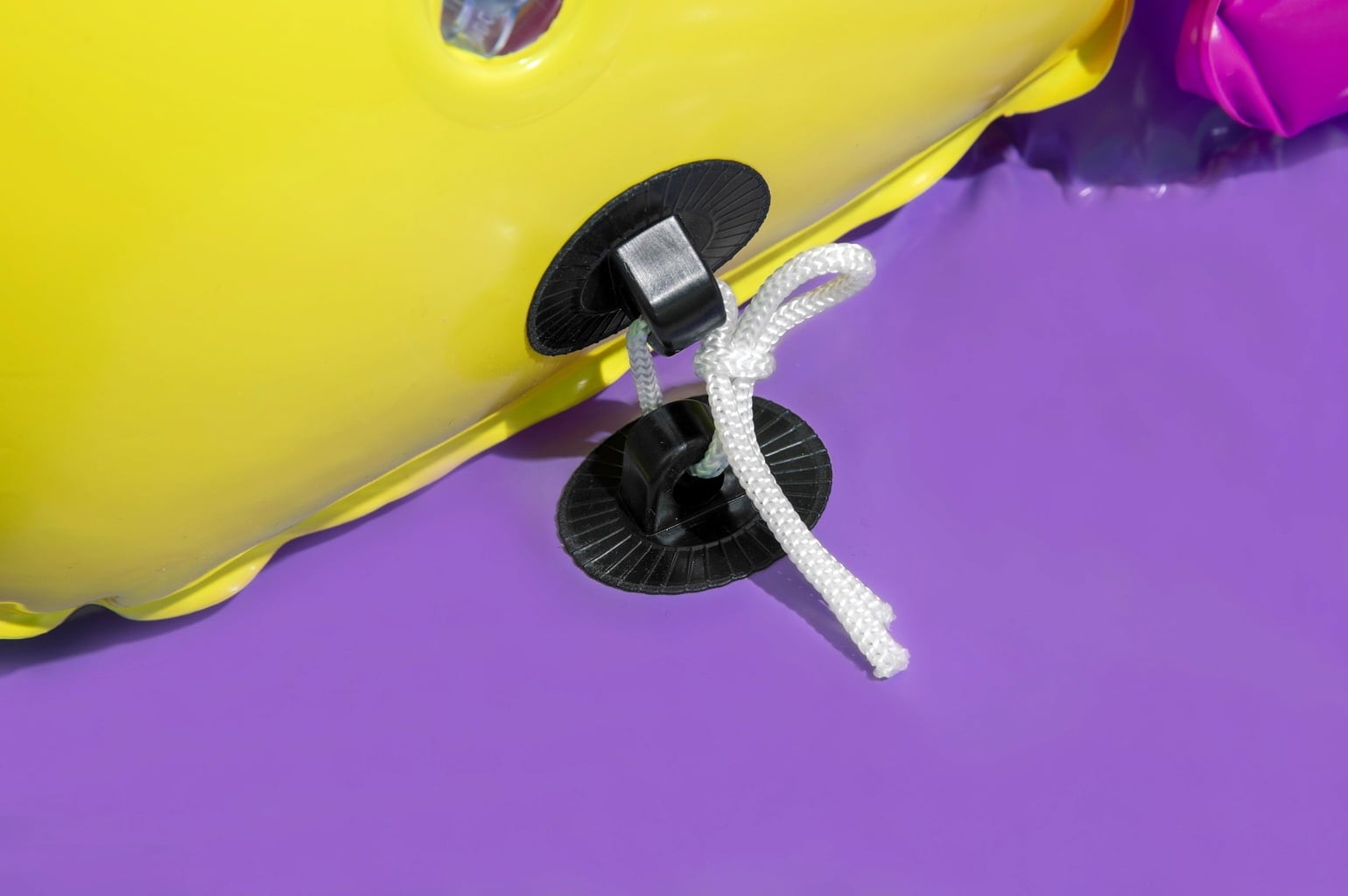 L’aire de jeux Bestway Sing 'n Splash se transforme en scène pour les petites stars du rock et les amateurs d’eau ! C’est à la fois un paradis ludique et un lieu idéal pour se rafraîchir. Grâce aux instruments gonflables, comme le microphone et le tambour, les enfants peuvent s’amuser et développer leur créativité dans l’eau. L’aire de jeux se compose de deux pataugeoires reliées par un toboggan amovible ; le sol gonflable devant le toboggan assure un atterrissage tout en douceur et un confort optimal.