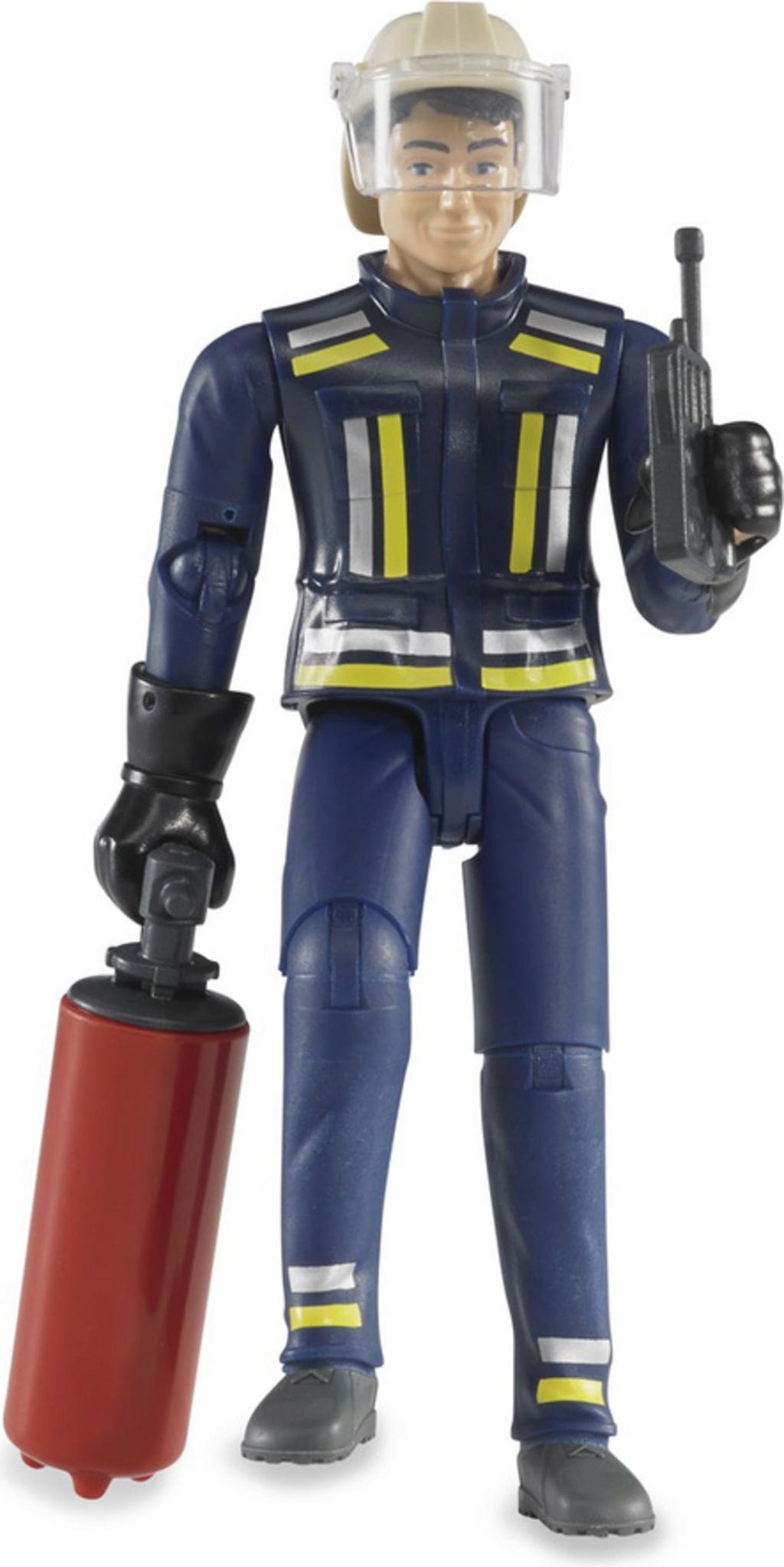 Ce sympathique pompier est parfaitement préparé pour chaque intervention. Équipé d'une radio et d'un extincteur, il se précipite immédiatement sur le lieu de l'incendie pour empêcher le feu de se propager. Son casque avec visière et ses gants le protègent des blessures causées par les flammes. Un complément parfait pour tous les véhicules de pompiers BRUDER, qui garantit un plaisir de jeu encore plus réaliste !