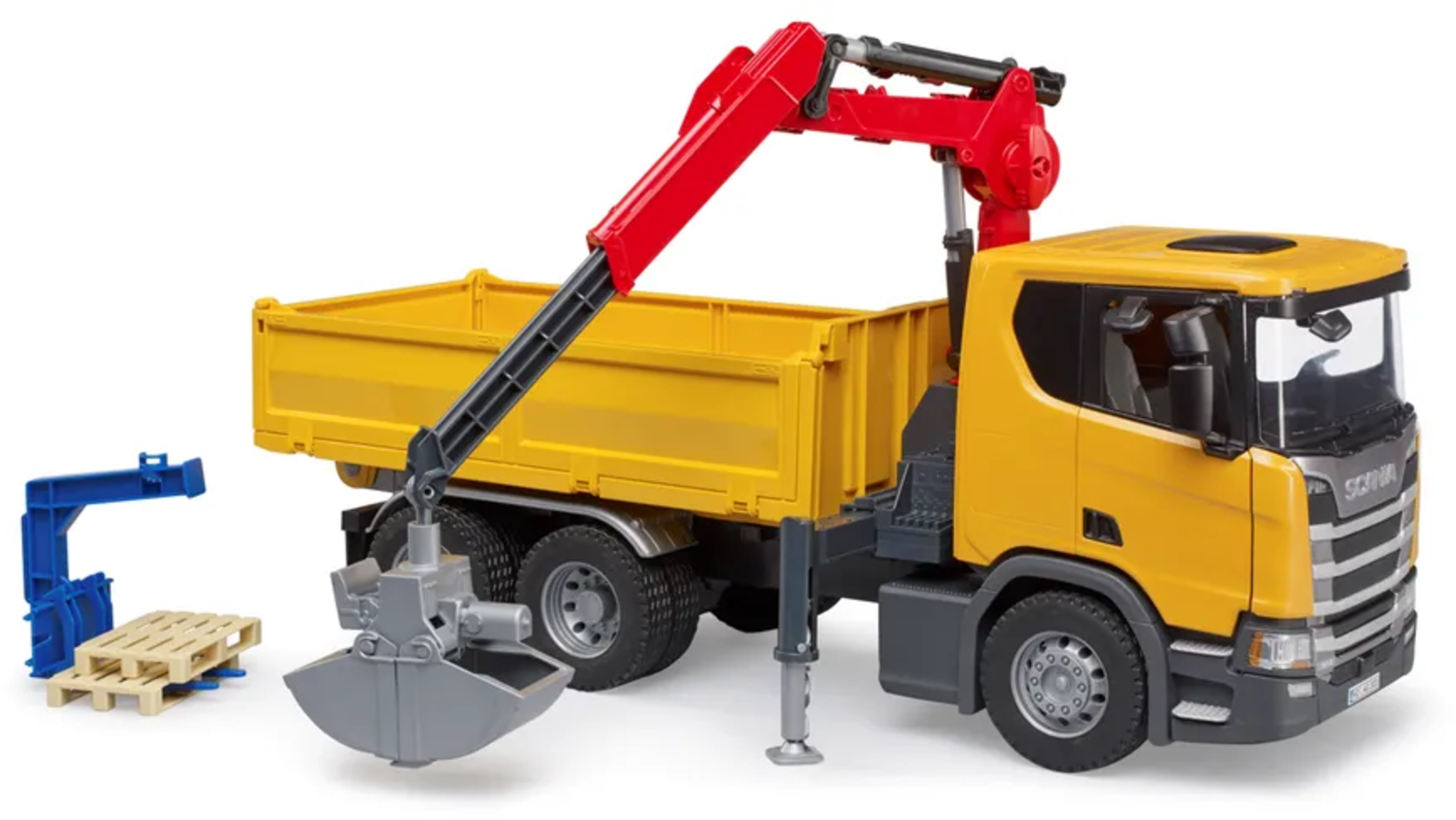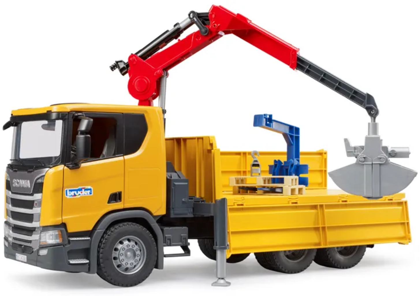 Bruder Scania Super 560R Camion de chantier avec grue et 2 palettes