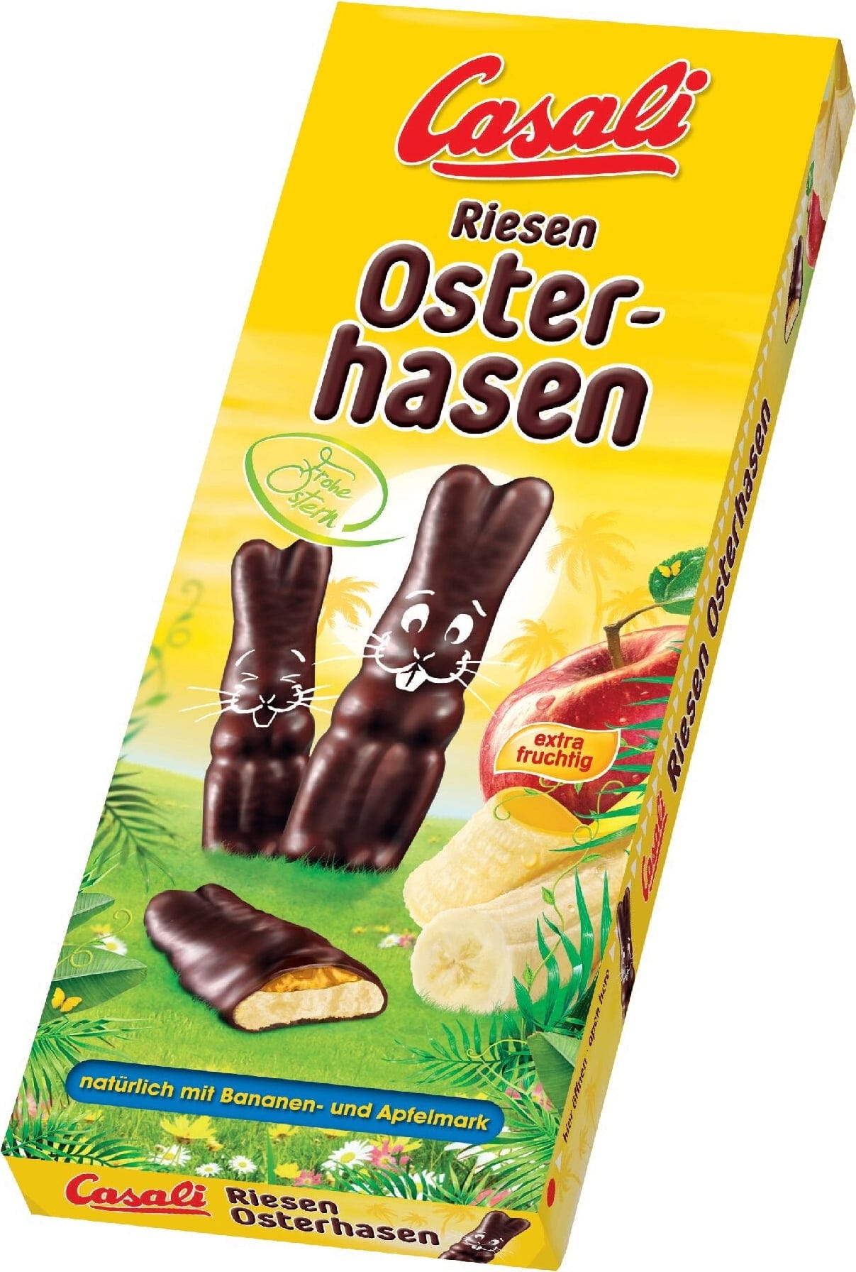 La pulpe de banane et de pomme forme un cœur moelleux et mousseux, recouvert de chocolat noir croquant, dans une combinaison irrésistible. Les lapins géants de Casali sont un vrai régal qui va conquérir les gourmands et rendre les fêtes de Pâques encore plus craquantes. Comme ils sont en édition limitée, mieux vaut ne pas tarder pour ne pas les manquer !