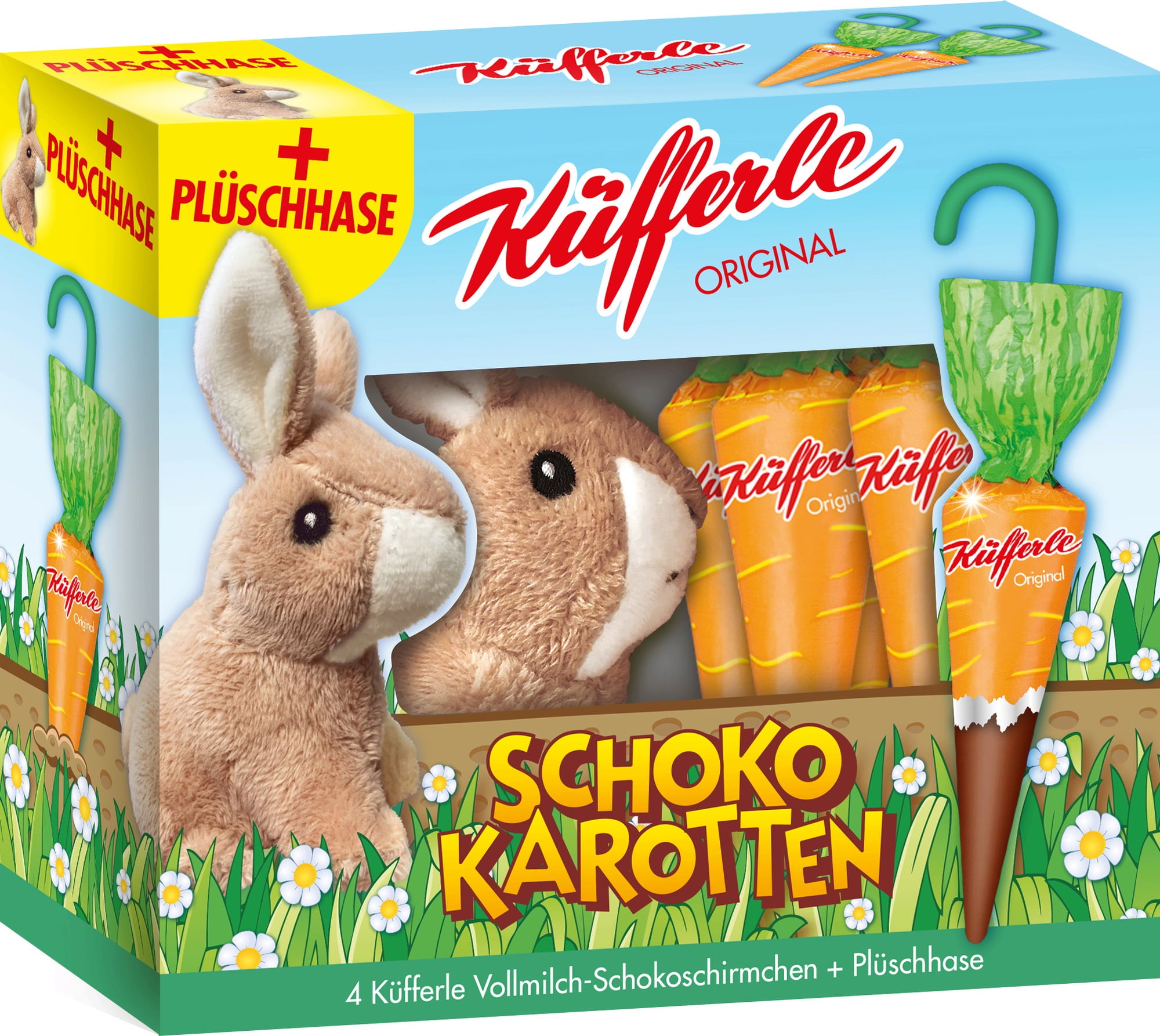 Küfferle Ensemble Lapin en Peluche + 4 Carottes au Chocolat, 54 g