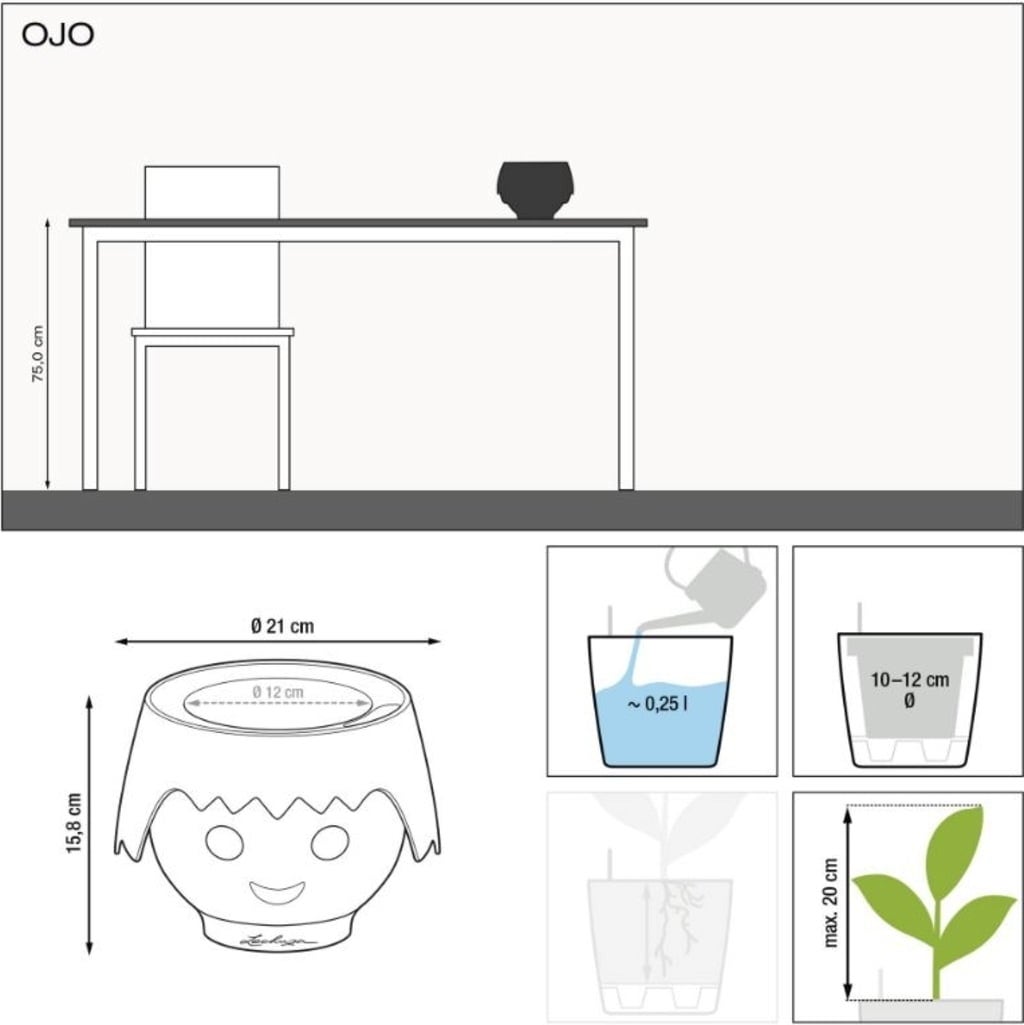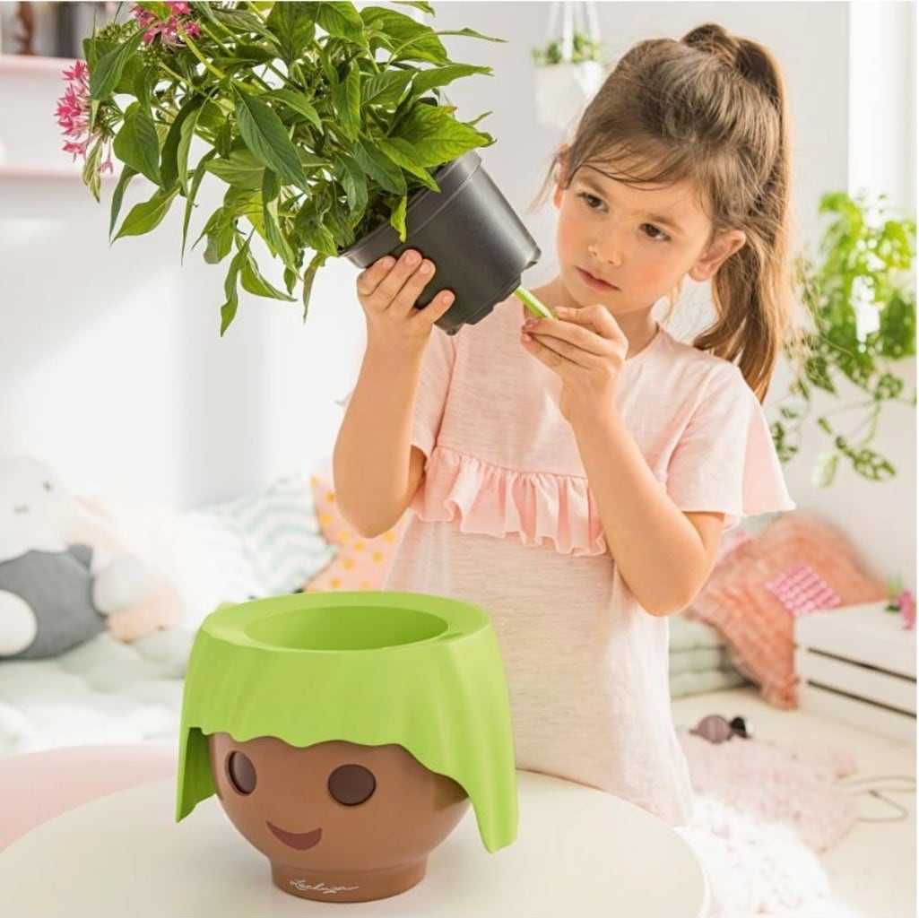 Ce pot de fleurs original OJO ressemble à une tête de personnage PLAYMOBIL ravira petits et grands jardiniers. Les enfants apprennent à prendre soin des plantes de manière ludique et originale. Et grâce au système d'irrigation par mèche de LECHUZA et aux yeux interactifs du pot OJO, le jardinage devient un jeu d'enfant !
