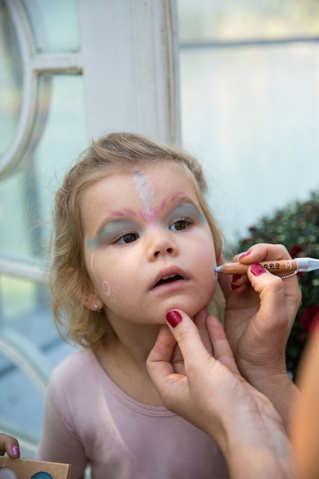 - Est un kit de maquillage aux formules hypoallergéniques et totalement sans danger pour la peau sensible des enfants.
