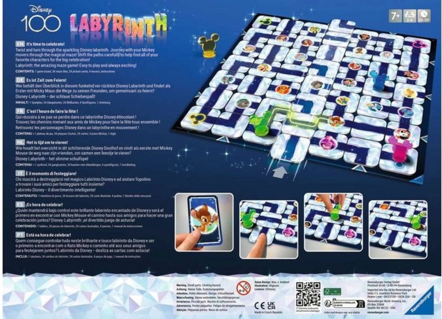 Joyeux 100ème anniversaire ! Pour célébrer cet événement, une édition spéciale du célèbre jeu de société Labyrinthe est désormais disponible, mettant en scène des personnages Disney emblématiques des 100 dernières années. Les règles captivantes n'ont pas changé : mettez en place le plateau de jeu, trouvez les personnages recherchés et déplacez les couloirs pour bloquer le chemin des autres au moment le plus inopportun.