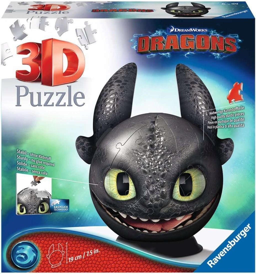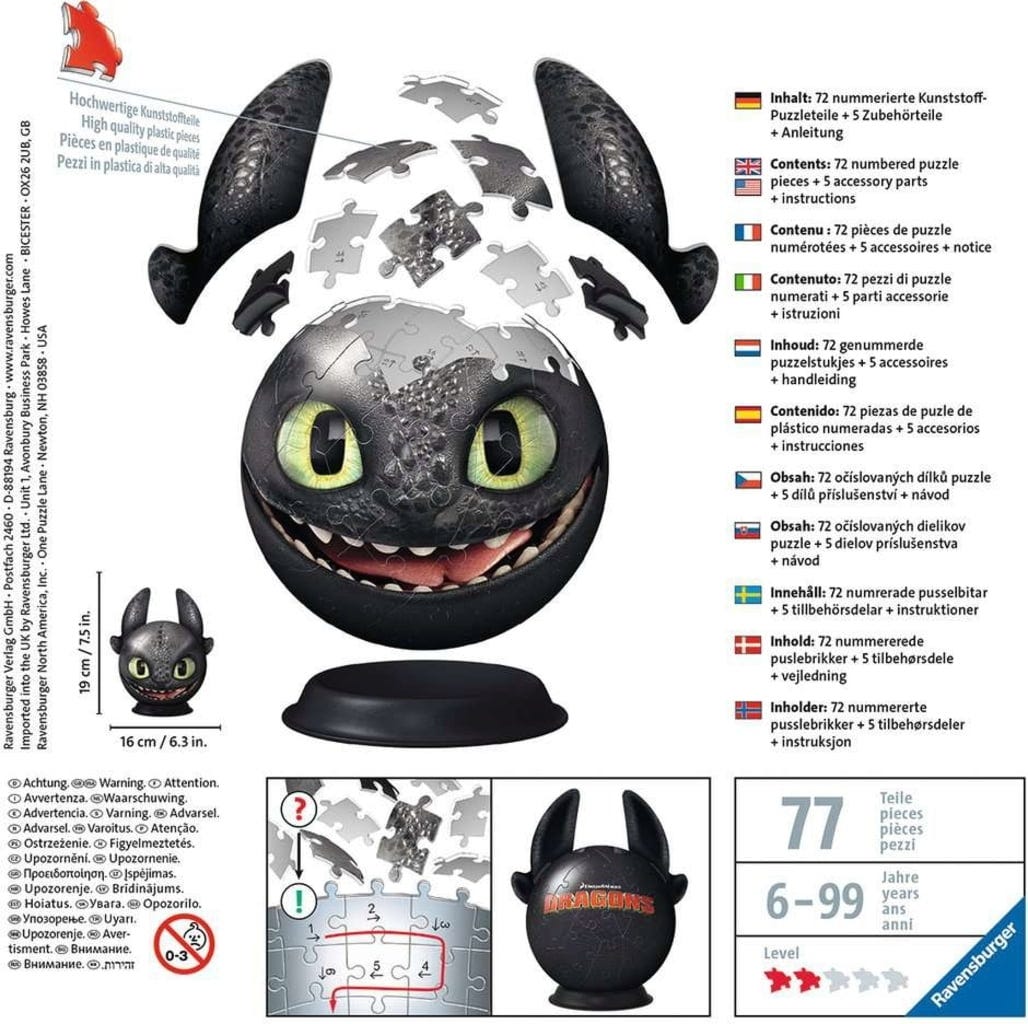Ravensburger Puzzle - Puzzle 3D - Dragons 3 Krokmou avec oreilles, 72 pièces