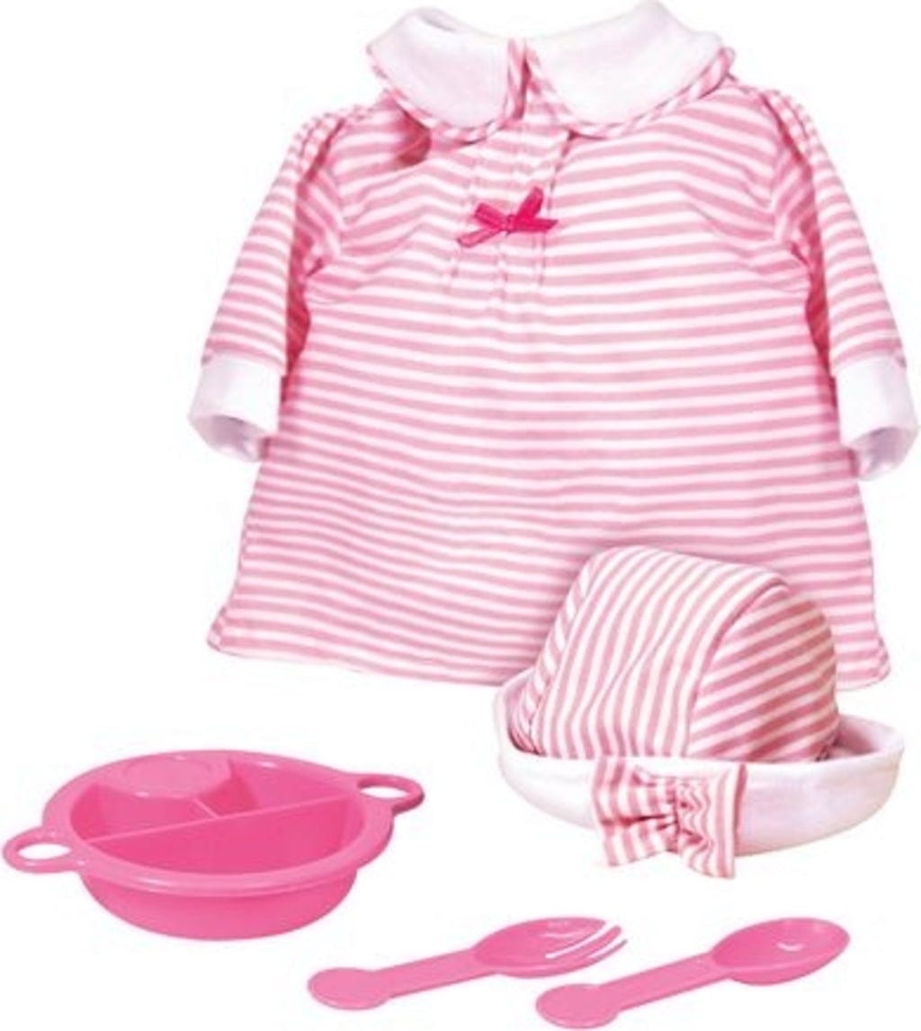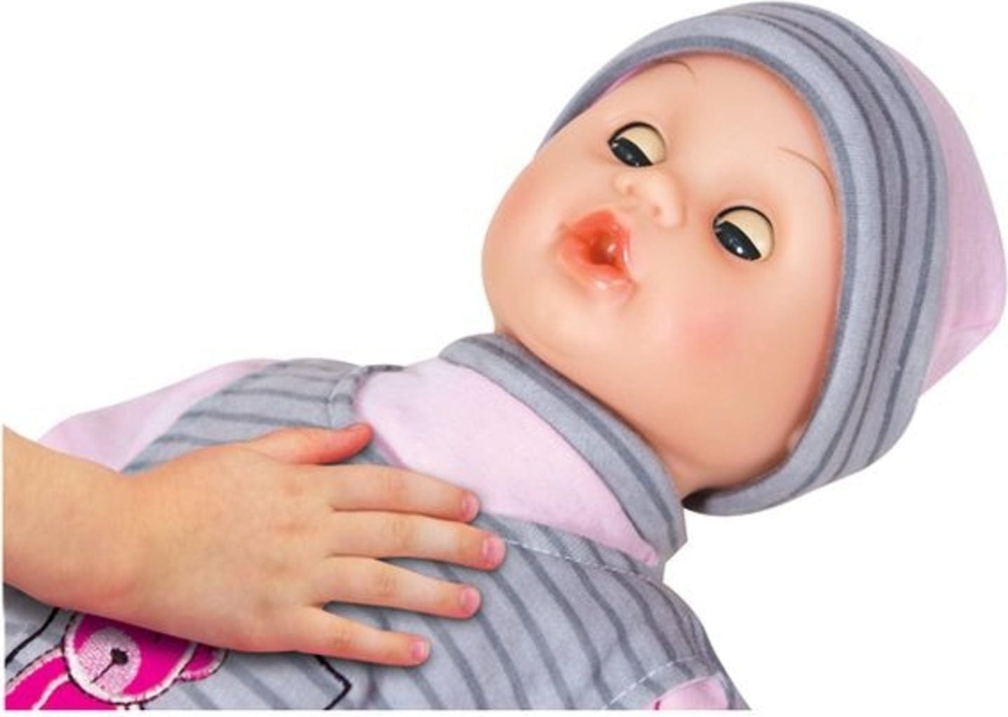 Avec cette adorable poupée bébé, les enfants imaginatifs à partir de 3 ans s'amuseront beaucoup. La poupée au rembourrage doux émet six sons différents. Bien sûr, deux tenues de rechange et la vaisselle assortie ne manqueront pas.