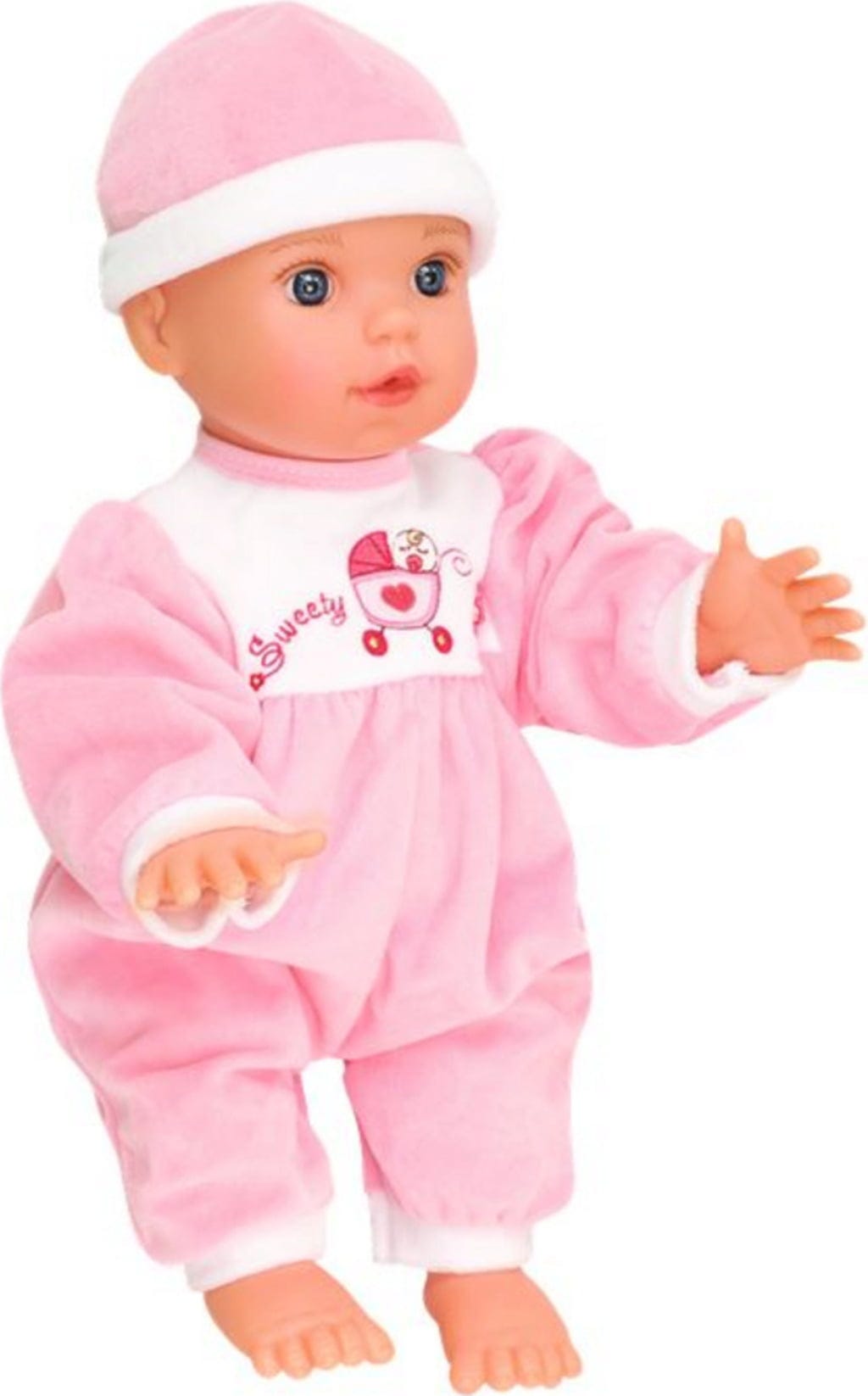 Cette adorable poupée offre des expériences de jeu particulièrement réalistes et conquiert instantanément le cœur de tous les parents de poupées. Lorsque la poupée est allongée sur le dos, elle s'endort et enchante ses parents avec de doux bruits de sommeil. Si elle pleure, elle se calme en étant prise dans les bras et en lui caressant doucement le dos. Dès qu'elle retrouve sa bonne humeur, elle se met à babiller joyeusement et à gigoter des bras et des jambes. Trop mignon !