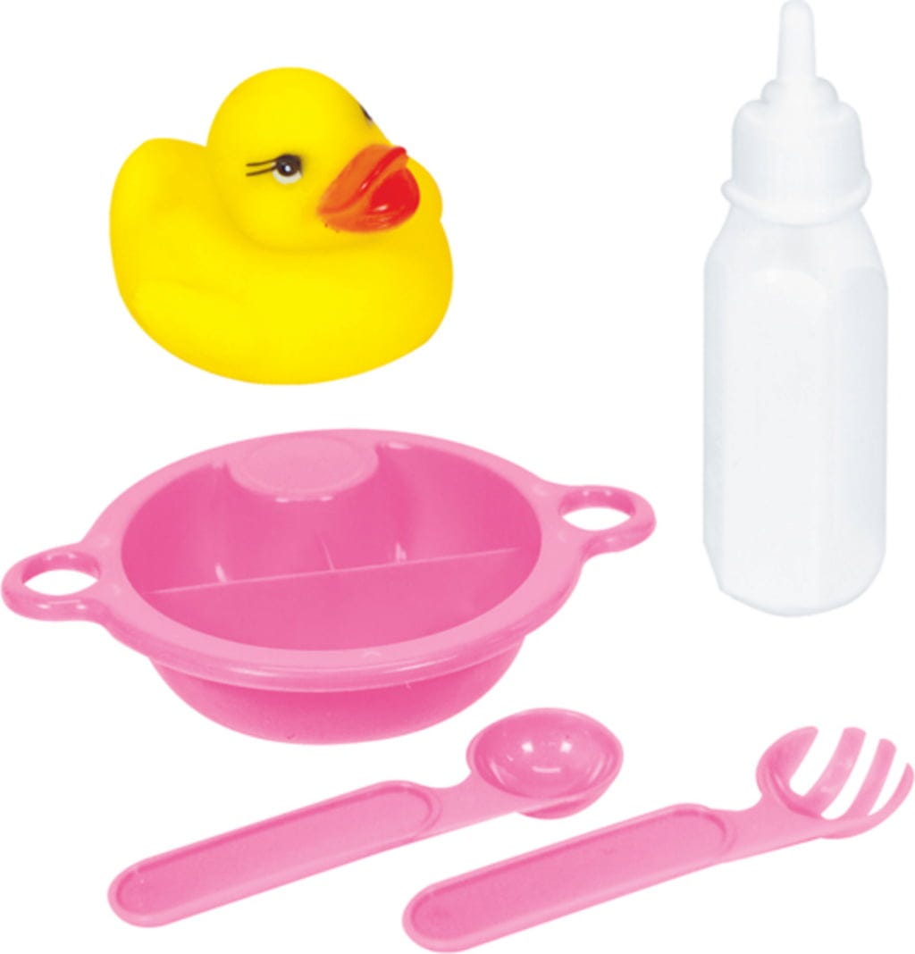 - Accessoires : baignoire, canard de bain, vaisselle et biberon