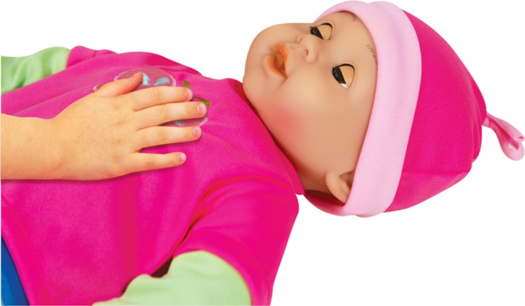 Cette superbe poupée n'attend que d'être choyée par ses parents de poupées. Elle adore jouer et si on lui appuie doucement sur le ventre, elle commence même à parler ! Elle maîtrise déjà très bien de jolis mots comme "Maman", "Papa" ou "Bonjour" et, selon son humeur, elle se met aussi à pleurer ou à rire. Ainsi, les parents de poupées peuvent interagir avec leur petit trésor et imaginer de nouvelles scènes de la vie quotidienne en famille.