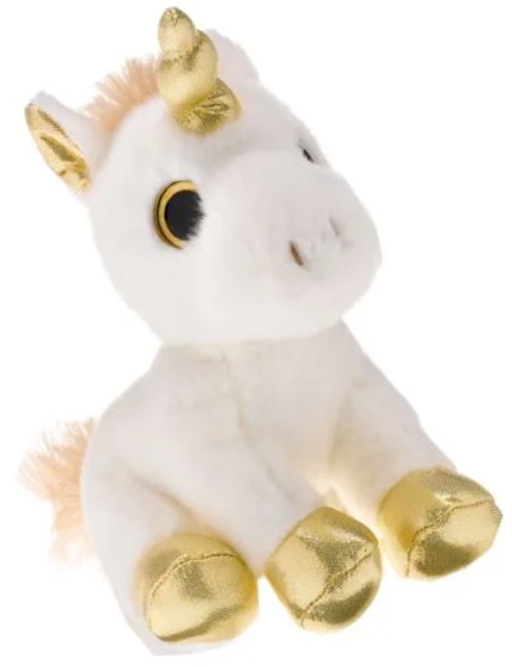 Cette adorable licorne est impatiente de passer des moments câlins avec vous. Avec sa corne dorée et ses sabots scintillants, elle est vraiment très spéciale.