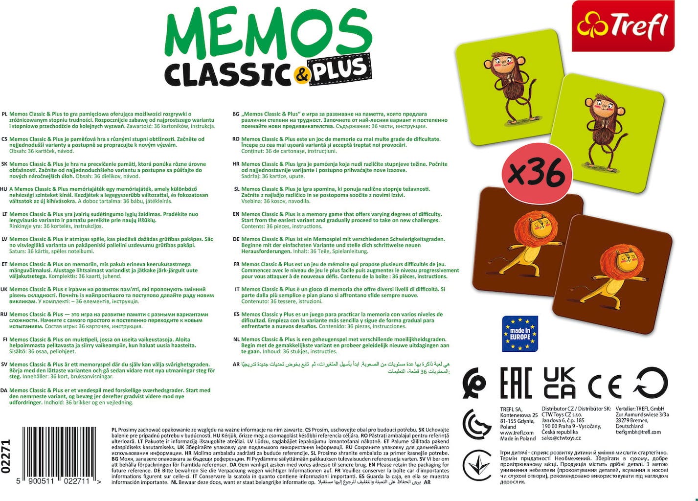 Trefl Memos Classic & Plus – Animaux, 36 pièces