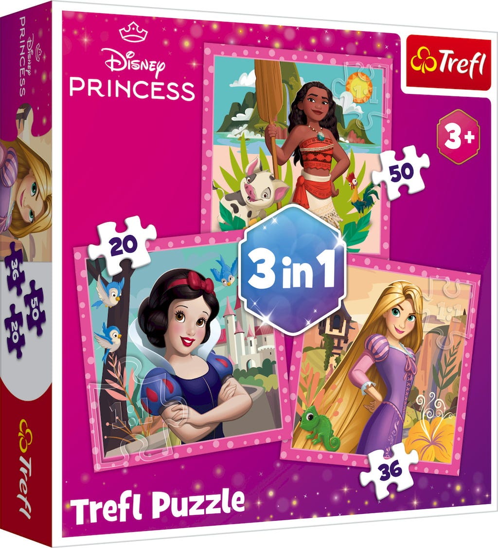 Trefl Puzzle 3 en 1 – Princesses Disney (20, 36, 50 pièces)