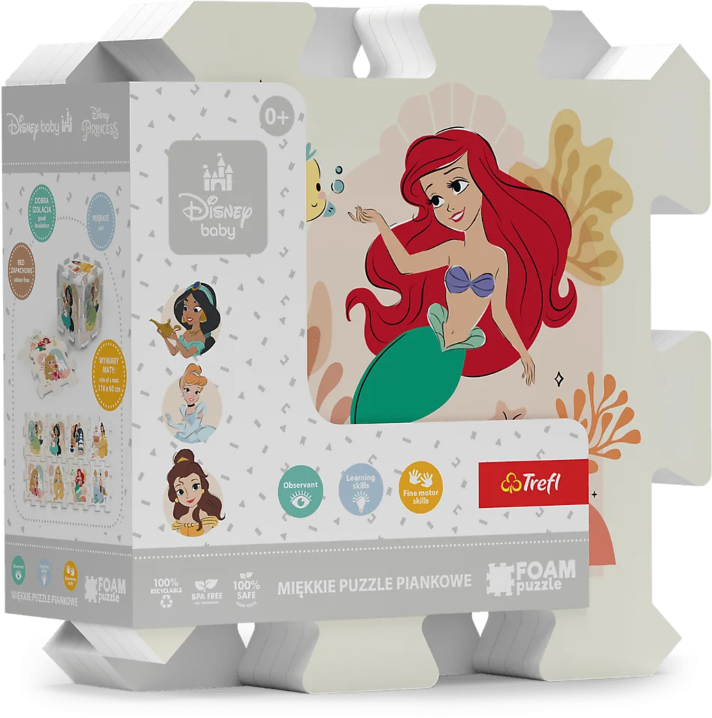 8 grandes pièces en mousse à assembler. Créez un tapis pour votre bébé à partir des pièces douces ou transformez-les ensemble en un grand cube. De grandes illustrations des Princesses Disney émerveilleront votre enfant et éveilleront son esprit de découverte.